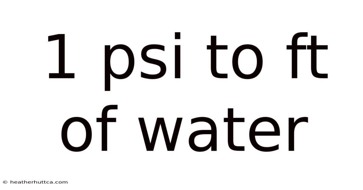 1 PSI equals 2.31 feet of water. This conversion factor is constant and can be applied to any PSI value by multiplying by 2.31 The details matter here..
