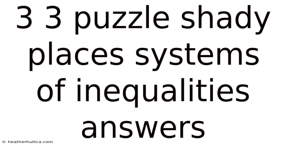 The 3 × 3 puzzle that appears in many math textbooks and competition worksheets is more than a simple brain‑teaser; it is a compact framework for exploring systems of inequalities and uncovering hidden patterns—often referred to as “shady places” where the solution set is not immediately obvious. In this article we will dissect the classic 3 × 3 inequality puzzle, explain how to identify and solve its “shady” regions, and provide step‑by‑step answers that work for both beginners and advanced learners. By the end, you will not only master the puzzle itself but also gain a powerful tool for tackling larger systems of linear inequalities in algebra, economics, and operations research Took long enough..
