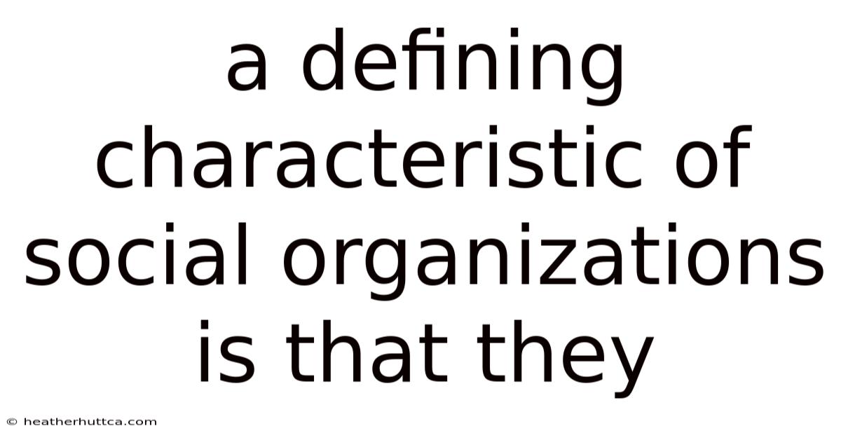 A defining characteristic of social organizations is that they operate through collective action and shared values to pursue common goals.
