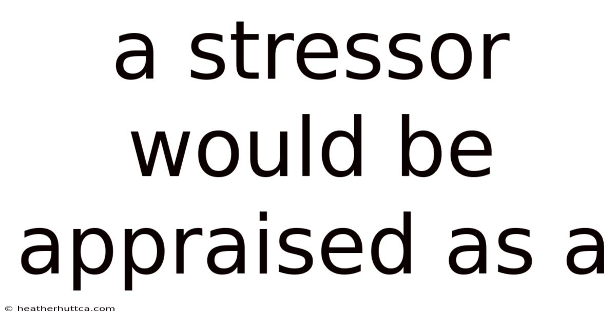 A Stressor Would Be Appraised As: Understanding How We Judge Threat and Challenge