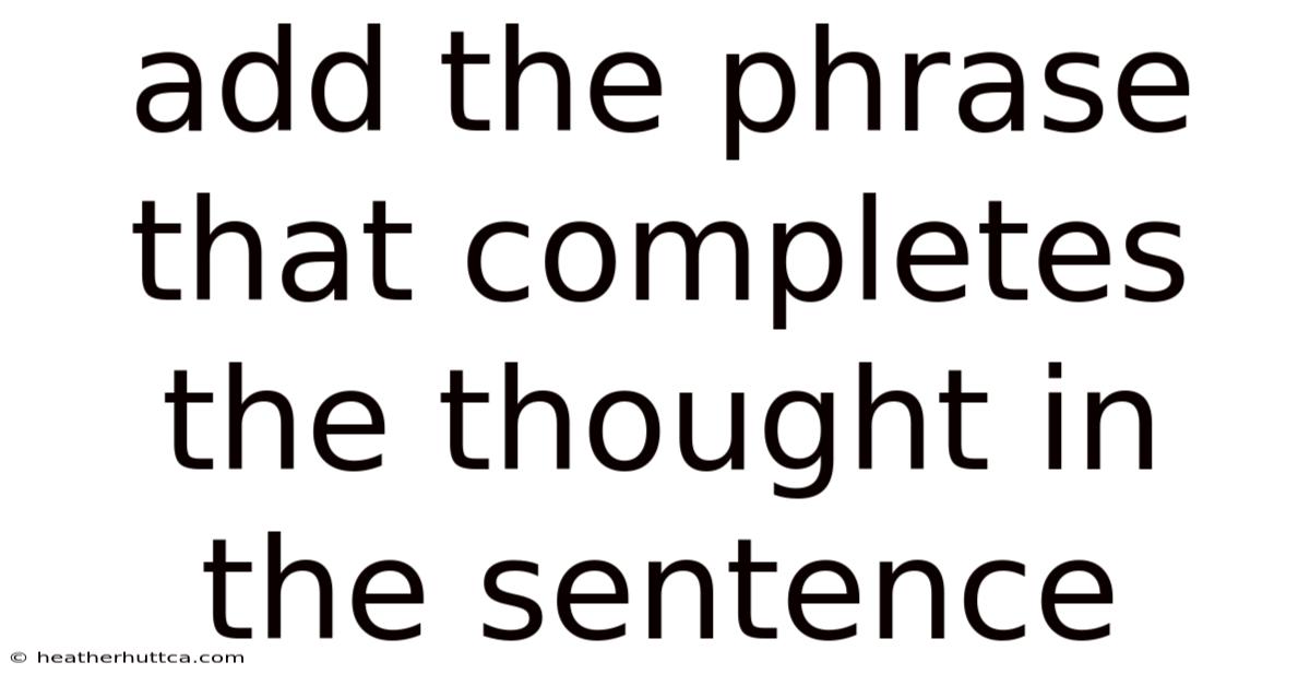 When you encounter a sentence that feels unfinished, the missing piece is often a phrase that completes the thought. This phrase supplies the necessary context, clarification, or conclusion that turns a fragment into a coherent statement. Whether you’re writing an academic essay, crafting a marketing copy, or simply texting a friend, knowing how to identify and insert the right completing phrase can dramatically improve clarity, flow, and impact. In this article we explore the mechanics behind sentence completion, the most common types of completing phrases, practical strategies for selecting the right one, and answers to frequently asked questions—all while keeping the focus on the core keyword: add the phrase that completes the thought.