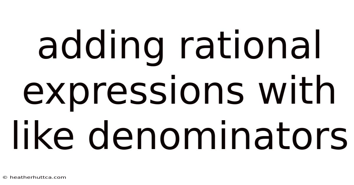Adding rational expressions with like denominators is one of the most straightforward operations in algebra, yet it lays the foundation for more complex manipulations involving unlike denominators, partial fractions, and integration. That said, the key steps—identifying the common denominator, combining numerators, and simplifying—are deceptively simple, but careful attention to domain restrictions and factoring ensures accuracy. Beyond the classroom, this skill appears in engineering calculations, financial modeling, and physics, where quantities with shared denominators naturally combine into a single, interpretable expression. Mastery of this process not only strengthens algebraic fluency but also equips students to handle real-world problems where multiple contributions share a common base Surprisingly effective..