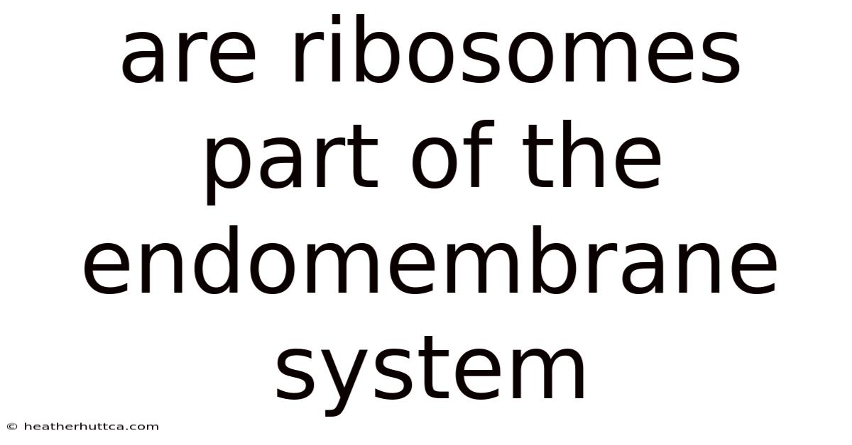 The answer to this question hinges on the definition of the endomembrane system. By strict anatomical criteria, ribosomes are not part of the endomembrane system. The endomembrane system refers specifically to the membrane-bound structures that form a continuous network. Ribosomes, being non-membrane-bound, do not fit this definition. That said, their association with the rough ER creates a functional link Worth knowing..