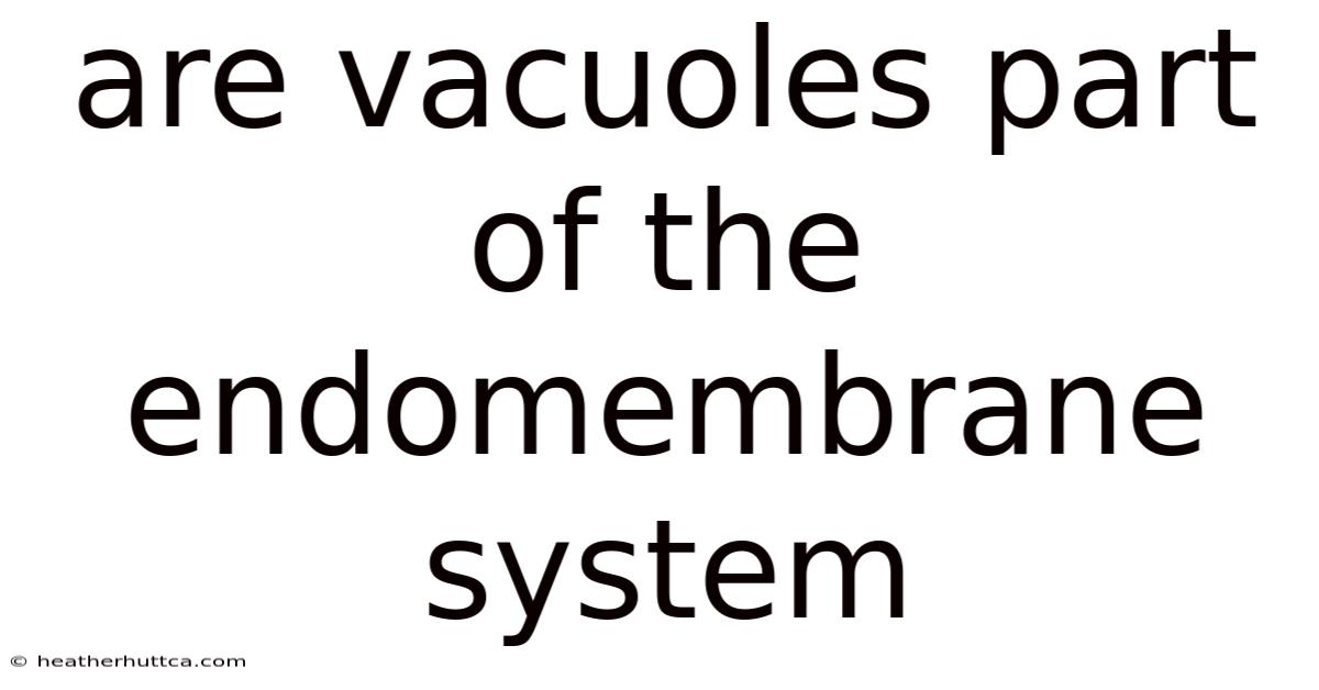 At the end of the day, the question of whether vacuoles are part of the endomembrane system is not a simple yes or no answer. Even so, the close relationship between vacuoles and the endomembrane system, particularly in plant and fungal cells, suggests that vacuoles can be considered an integral part of this system in many cases. It depends on the specific type of cell and vacuole in question, as well as the definition of the endomembrane system being used. Understanding the complex interactions between vacuoles and the endomembrane system is crucial for gaining a comprehensive understanding of cellular organization and function in eukaryotic cells Worth keeping that in mind..