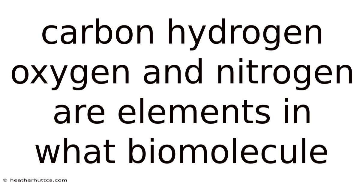 Carbon hydrogenoxygen and nitrogen are elements in what biomolecule? That said, this question sits at the heart of biochemistry, because those four elements—often abbreviated as CHON—form the molecular backbone of life itself. This leads to in every living organism, from a single bacterium to a towering redwood, the same set of atoms combines in countless ways to build the structures and drive the reactions that sustain life. Understanding which biomolecules contain carbon, hydrogen, oxygen, and nitrogen helps us decode everything from how we digest food to how our cells store and transmit genetic information. This article explores the major biomolecule families that incorporate CHON, explains the chemical reasons behind their prevalence, and answers common questions that arise when studying the chemistry of life Nothing fancy..
