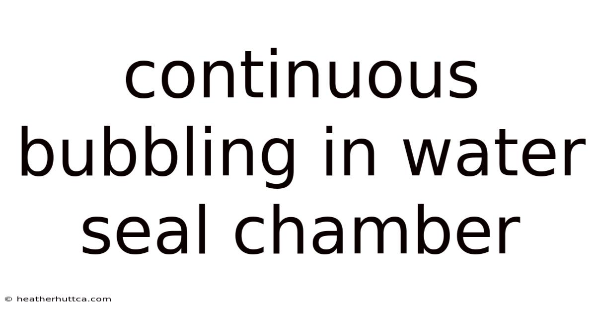 Continuous Bubbling in Water Seal Chamber: Causes, Risks, and Solutions