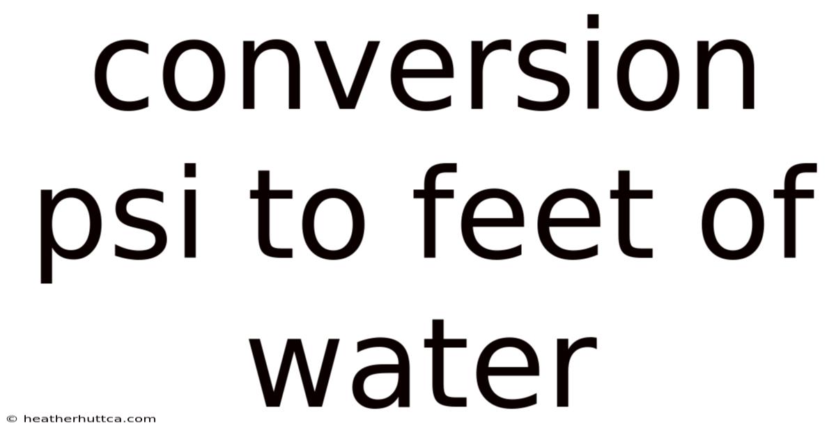 - From PSI to Feet of Water: Multiply the PSI value by 2.306.