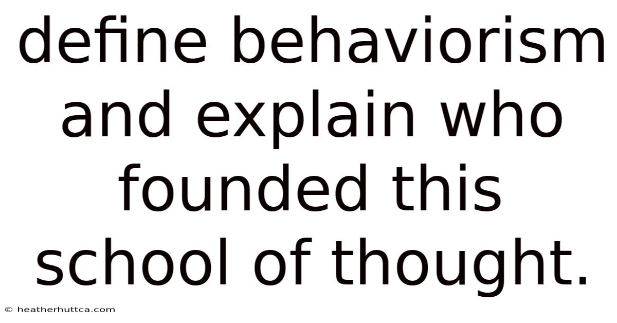 Define Behaviorism and Explain Who Founded This School of Thought