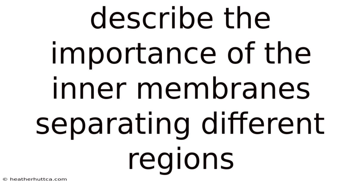 The importance of inner membranes separating different regions cannot be overstated in the context of biological systems. From the nuclear envelope protecting genetic material to the mitochondrial membranes generating cellular energy, these structures enable the complexity of life as we know it. **Inner membranes create the compartmentalization necessary for metabolic efficiency, genetic regulation, and cellular specialization.