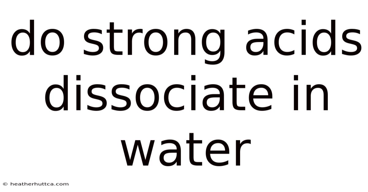The concept of acid-base chemistry often serves as a cornerstone in understanding how substances interact within the delicate balance of the chemical world. Which means among the most central interactions in this realm are those involving strong acids and their behavior when dissolved in water. Strong acids, characterized by their complete dissociation into ions upon contact with a solvent, fundamentally alter the properties of aqueous solutions. Even so, this phenomenon not only shapes the physical characteristics of substances but also underpins countless applications across scientific disciplines, industrial processes, and everyday life. Grasping the intricacies of acid dissociation in water requires a nuanced appreciation of thermodynamics, molecular structure, and the dynamic interplay between reactants and environments. While the term "strong acid" might initially evoke imagery of brisk or violent reactions, the reality is far more subtle, revealing the delicate equilibrium that governs their behavior. Still, this article looks at the mechanics of strong acid dissociation, exploring its implications, the scientific principles that govern it, and its relevance to both theoretical understanding and practical applications. Because of that, through a structured exploration, we will uncover why strong acids behave so profoundly differently from weaker counterparts, how their dissociation influences pH levels, and why this property remains central to advancements in fields ranging from environmental science to pharmaceutical development. By examining these aspects in depth, we aim to illuminate the foundational role that strong acids play in shaping the chemical landscape we inhabit.