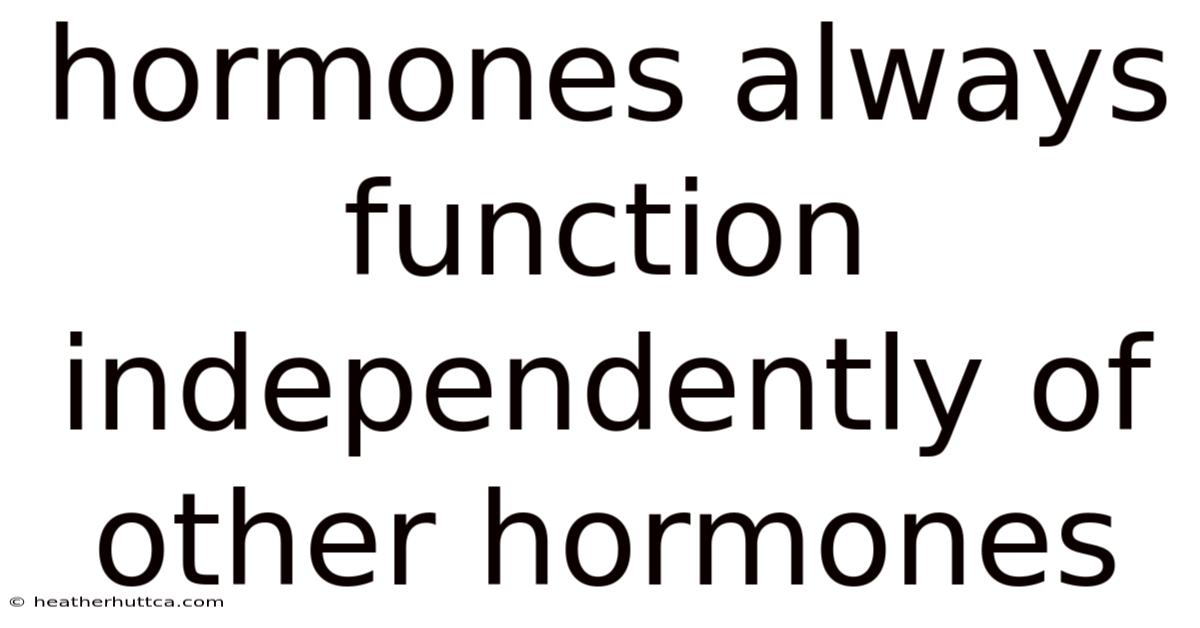 The idea that hormones always function independently of other hormones is a common misconception that oversimplifies the layered dance of the endocrine system. In real terms, hormones, often referred to as chemical messengers, are produced by glands in the body and travel through the bloodstream to target organs or tissues. While they play critical roles in regulating processes like metabolism, growth, reproduction, and stress responses, their actions are rarely isolated. Here's the thing — instead, hormones frequently interact, influence, or even counteract each other to maintain homeostasis—the body’s delicate balance. This article explores why the notion of hormonal independence is flawed, how hormones collaborate or compete, and the scientific principles that govern these interactions.