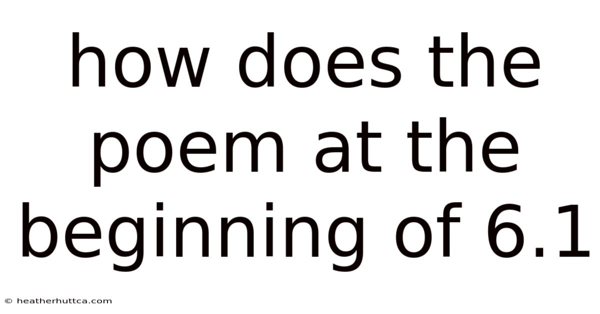 The layered interplay of sound and silence often serves as the cornerstone upon which narratives are built, particularly in the opening moments of a narrative arc that demand immediate attention. In many literary works, the initial lines act as a prism through which the essence of a story is refracted, shaping perceptions and expectations long before the reader even begins to engage deeply. Consider the poem at the beginning of 6.1 as a key artifact, a gateway that encapsulates the thematic core and stylistic fingerprint of the entire piece. This opening segment does not merely introduce the subject; it establishes its heartbeat, guiding the trajectory of subsequent development while simultaneously inviting readers into a shared emotional landscape. On top of that, the poem’s purpose here is multifaceted: it establishes tone, introduces key motifs, and sets a rhythmic foundation that resonates throughout the following sections. By examining its structure, imagery, and thematic undertones, one gains insight into how such a starting point can profoundly influence the overall coherence and impact of the work as a whole. Day to day, this analysis will dig into the mechanics of the poem’s construction, its role in bridging gaps between preceding material and the broader narrative, and its enduring relevance to the reader’s experience. Through close scrutiny, we uncover how even the most transient phrases can accumulate significance, weaving a tapestry that underpins the entire composition. The poem at the beginning of 6.Still, 1 thus emerges not as an isolated component but as a linchpin, its influence permeating every layer of the subsequent content. Its study reveals the delicate balance between subtlety and impact, where precision in execution can elevate the entire endeavor or obscure its potential It's one of those things that adds up..
