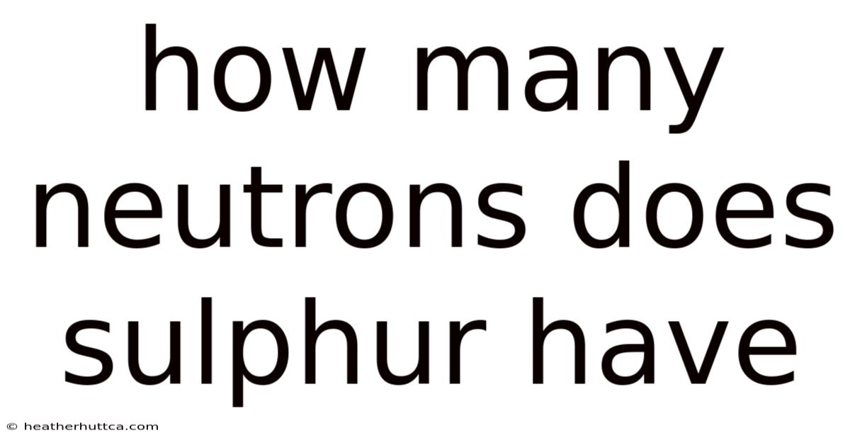Sulphur, with the chemical symbol S, is one of the most familiar non‑metal elements in everyday life, appearing in everything from matchsticks to fertilizers. Worth adding: while its chemical behavior often steals the spotlight, the number of neutrons in a sulphur atom is a fundamental piece of information that underpins its isotopic diversity, physical properties, and applications in science and industry. This article explores exactly how many neutrons sulphur can have, why those numbers matter, and how they influence everything from geological dating to pharmaceutical synthesis And that's really what it comes down to..