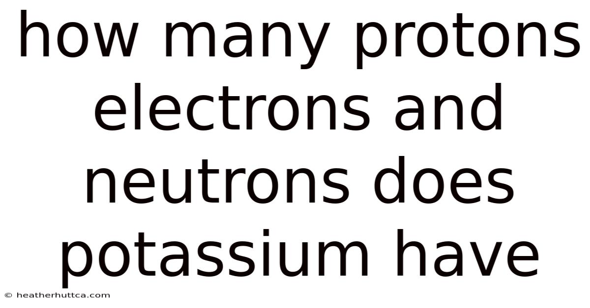 Potassium is a chemical element that plays a vital role in both natural and industrial processes. Also, understanding its atomic structure is essential for grasping its chemical behavior and applications. At the core of this understanding lies the question: how many protons, electrons, and neutrons does potassium have? This article gets into the atomic composition of potassium, explaining the roles of each particle and how they contribute to the element’s properties. By exploring the specifics of potassium’s atomic number, isotopes, and electron configuration, readers will gain a comprehensive view of this essential element It's one of those things that adds up..