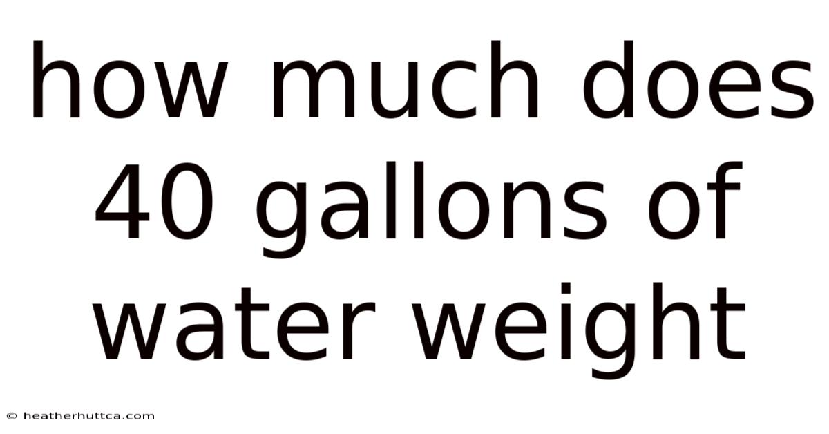When considering the weight of 40 gallons of water, the answer is both straightforward and deeply rooted in scientific principles. Understanding this weight is not just a matter of curiosity—it has practical implications in everyday life, from household tasks to industrial applications. At its core, this question revolves around the density of water and the standard conversion between gallons and pounds. Here's a good example: knowing the weight of 40 gallons of water can help determine if a container is suitable for storage, how much effort is required to move it, or even how it compares to other common objects. This article will explore the calculation, factors that influence the weight, and real-world contexts where this information becomes relevant.
