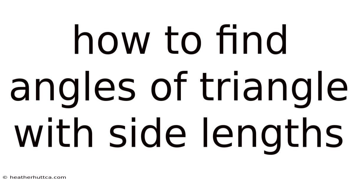 Understanding how to find angles in a triangle using side lengths is a fundamental skill in geometry, especially for students and learners aiming to master mathematical concepts. This process not only enhances problem-solving abilities but also strengthens your ability to apply theoretical knowledge to real-world scenarios. On the flip side, whether you're preparing for exams or tackling practical challenges, knowing the right methods to determine angles based on side lengths is essential. Let’s dive into the detailed steps and techniques that will empower you to tackle this important mathematical task with confidence Took long enough..