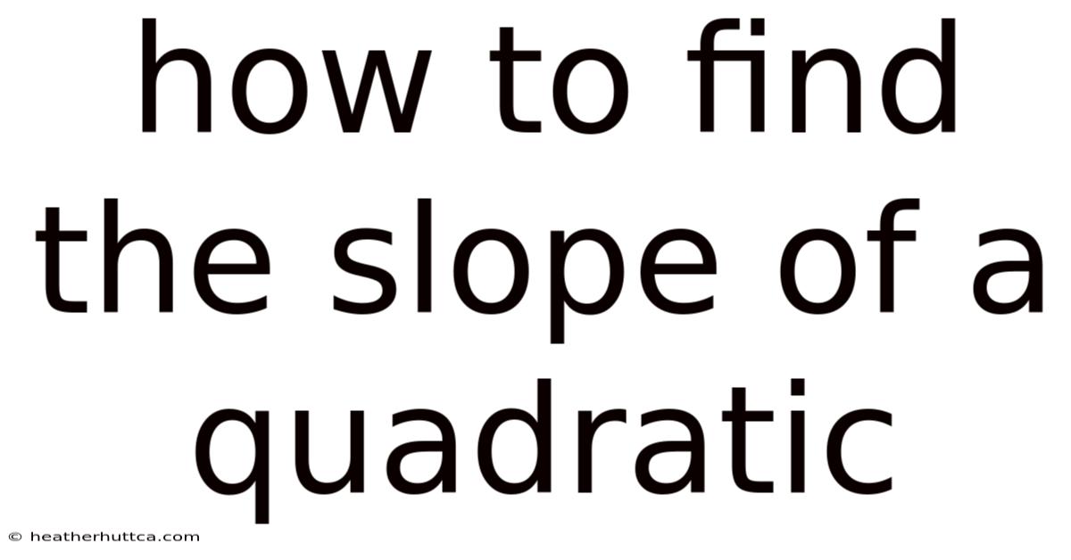 The concept of slope is fundamental in mathematics, but it behaves differently for quadratic functions compared to linear equations. Still, while a straight line has a constant slope, a quadratic function, which forms a parabola, has a slope that changes at every point along its curve. Now, understanding how to find the slope of a quadratic is essential for analyzing its behavior, solving real-world problems, and mastering advanced mathematical concepts. This article will guide you through the process of determining the slope of a quadratic function, explain the underlying principles, and provide practical examples to solidify your understanding That alone is useful..