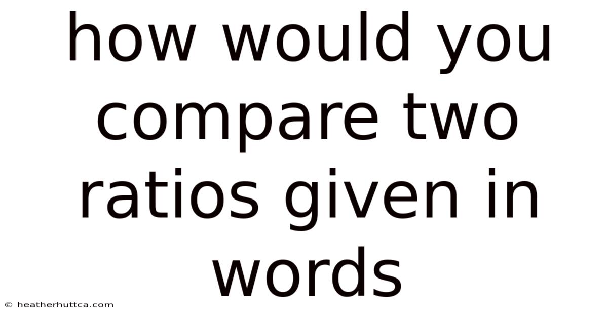 When comparing two ratios expressed in words, the key is to first understand the relationship between the quantities being compared. A ratio is a way to express the relative size of two or more quantities, and it can be written in several forms: using the word "to," as a fraction, or with a colon. Take this: the ratio of apples to oranges can be written as "3 to 2," "3:2," or "3/2.