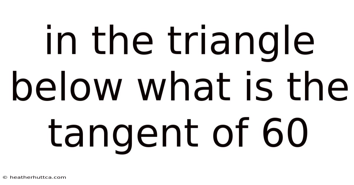 Understanding the tangent of 60 degrees is a fundamental concept in mathematics, especially when dealing with triangles and geometry. This article will explore the significance of this value, how it is derived, and its practical applications. By the end of this explanation, you will have a clear grasp of what the tangent of 60 degrees represents and why it matters in various fields That's the whole idea..