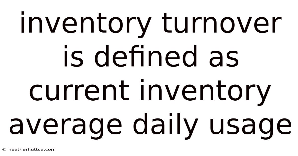 Understanding inventory turnover is crucial for businesses aiming to optimize their operations and maximize profitability. Defined as the current inventory average daily usage, this measure provides a clear picture of how quickly goods are sold and replenished. Consider this: at its core, inventory turnover is a vital metric that reflects how efficiently a company manages its stock. Practically speaking, for businesses, knowing this number helps in making informed decisions about purchasing, storage, and sales strategies. In this article, we will explore what inventory turnover means, why it matters, and how to calculate and improve it effectively Worth keeping that in mind. Turns out it matters..