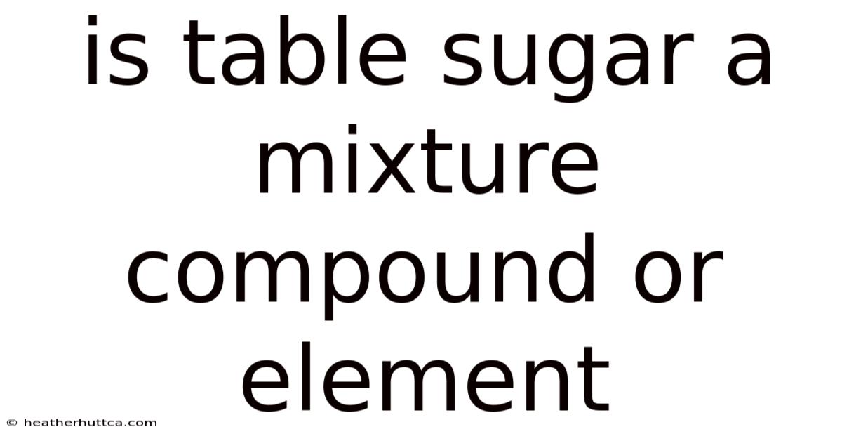 Table sugar, the common sweetener found in countless kitchens worldwide, is a substance we use daily without often considering its fundamental chemical nature. And the question of whether table sugar is a mixture, compound, or element touches on basic chemistry principles that help us understand the composition of matter around us. Practically speaking, when examining table sugar scientifically, we find it definitively classified as a compound rather than a mixture or element. This classification stems from its unique chemical structure, composition, and properties that distinguish it from other categories of matter And it works..