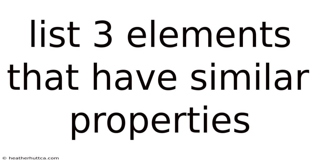 The concept of listing 3 elements that have similar properties is not just an academic exercise; it has practical implications in fields ranging from material science to environmental chemistry. To give you an idea, understanding the reactivity of one alkali metal can help scientists anticipate the behavior of others in the same group. This similarity allows scientists to predict the behavior of one element based on the known properties of its counterparts. Think about it: elements with similar properties often share the same valence electron configuration, which dictates how they form bonds and react with other substances. This article will focus on three elements that exemplify this phenomenon, highlighting their shared traits and the scientific principles that govern them.