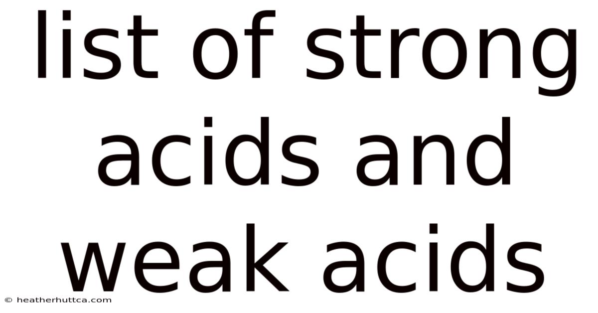 Understanding the distinction between strong acids and weak acids is fundamental for anyone studying chemistry, whether you’re a high‑school student, a university major, or a hobbyist conducting experiments at home. Worth adding: strong acids dissociate almost completely in water, delivering a high concentration of hydrogen ions (H⁺) and producing low pH values. Weak acids, by contrast, only partially ionize, resulting in a comparatively higher pH for the same molar concentration. This article presents a comprehensive list of strong acids and weak acids, explains the underlying reasons for their behavior, and offers practical guidance for handling them safely in the laboratory.
