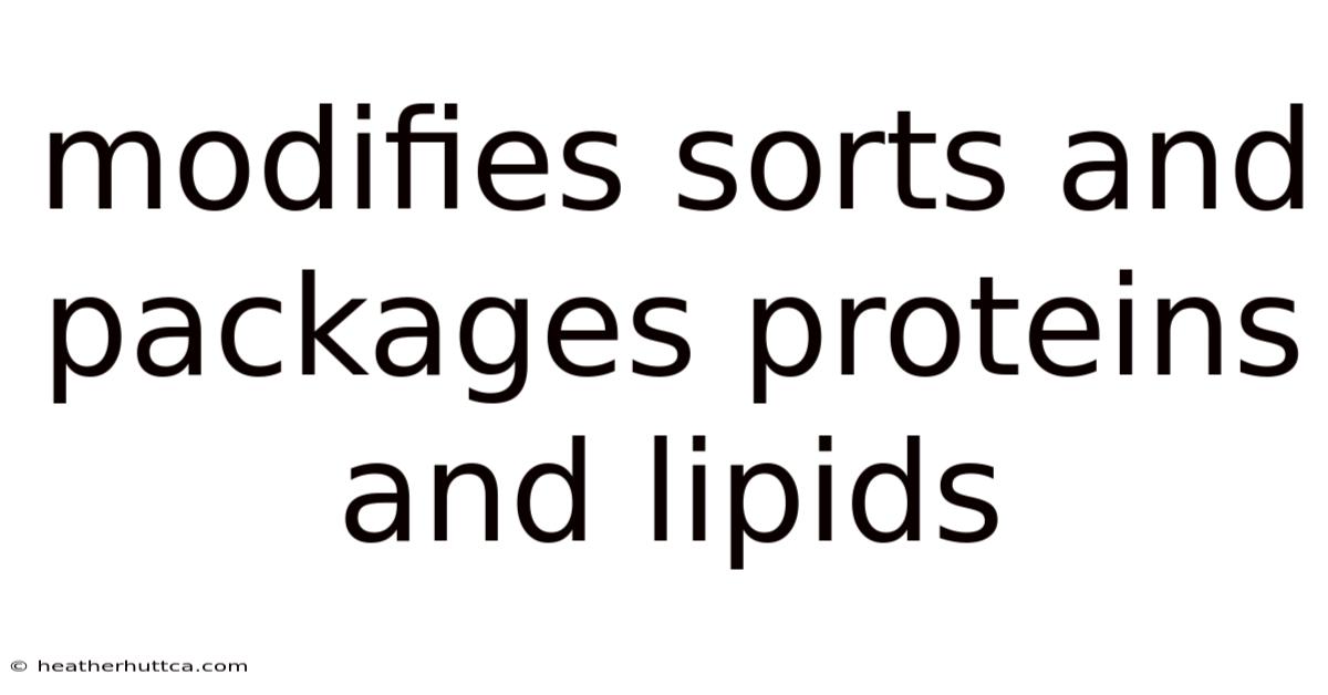 What is the main organelle responsible for modifying, sorting, and packaging proteins and lipids? The Golgi apparatus is the primary organelle that handles these tasks, although the endoplasmic reticulum also is key here in the initial stages.