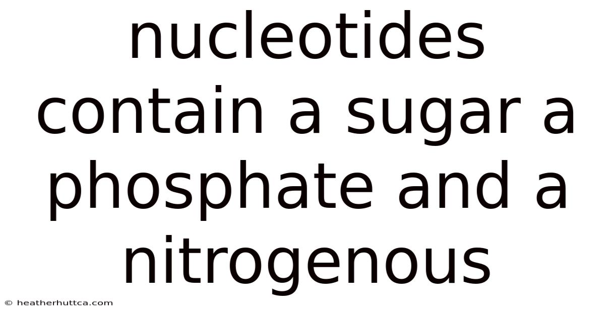 Nucleotides are the fundamental building blocks of nucleic acids, and each nucleotide is composed of three distinct components: a sugar, a phosphate group, and a nitrogenous (or nitrogen‑containing) base. Think about it: understanding how these three parts come together not only explains the structure of DNA and RNA but also reveals why nucleotides are central to energy transfer, cellular signaling, and the regulation of gene expression. This article unpacks the chemistry of each component, explores how they assemble into functional polymers, and highlights the diverse roles nucleotides play in living organisms Small thing, real impact. Which is the point..