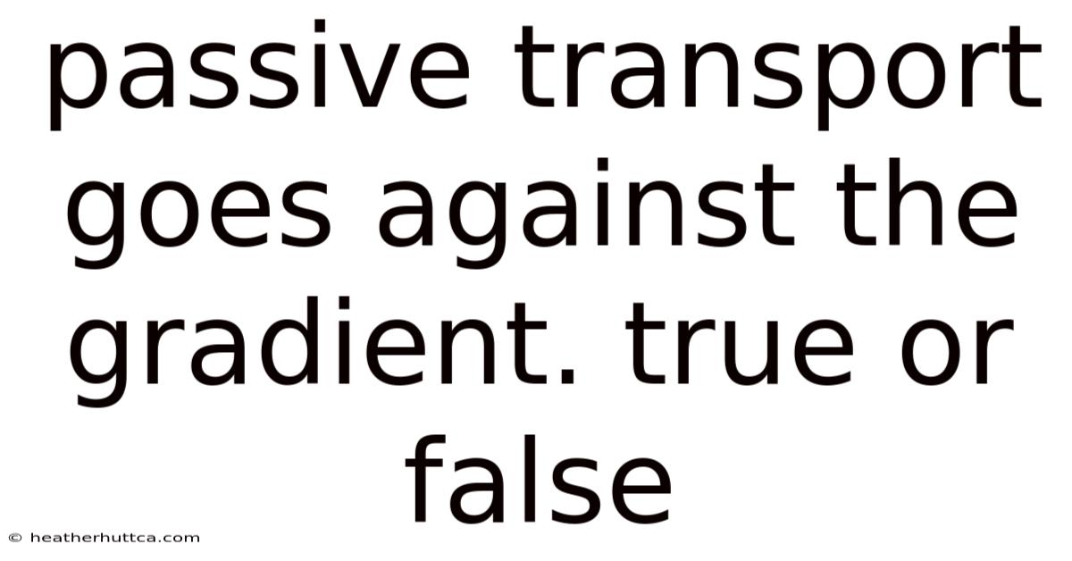 Passive transport relies on the natural movement of molecules from areas of high concentration to low concentration, a process that inherently aligns with the principles of thermodynamics. On top of that, this fundamental mechanism operates without the need for energy expenditure, making it a cornerstone of cellular function across all living organisms. Yet, there remains a common misconception that passive transport inherently defies the gradient, sparking curiosity and debate among students and scientists alike. Think about it: at first glance, one might assume that such a process contradicts the very concept of a gradient, leading to questions about its validity. On the flip side, upon closer examination, the relationship between passive transport and the gradient is nuanced, revealing a complex interplay that challenges simplistic interpretations. While some might interpret passive transport as inherently opposing the direction of the gradient, the reality is more nuanced, rooted in the very laws that govern movement itself. So understanding this dynamic requires a careful analysis of how energy, structure, and biological necessity intersect within the framework of passive mechanisms. This article looks at the core principles of passive transport, explores its connection to gradients, and clarifies whether the assertion that it "goes against the gradient" holds true or false, ultimately shedding light on the scientific consensus surrounding this topic.