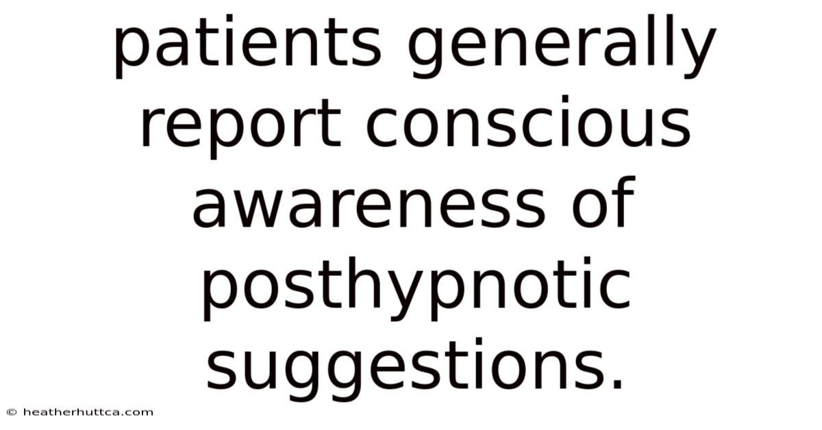 Q: Are there cases where patients truly have no awareness of posthypnotic suggestions? A: While rare in clinical settings, some individuals may experience limited awareness, particularly with highly hypnotizable individuals in specific contexts.