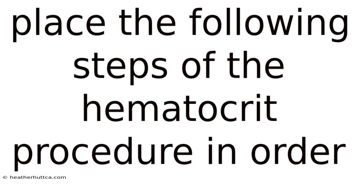 The hematocrit test—often abbreviated as HCT—is a fundamental laboratory procedure used to determine the proportion of red blood cells (RBCs) in whole blood. By measuring the volume percentage of erythrocytes relative to the total blood volume, clinicians can diagnose anemia, polycythemia, dehydration, and a range of other hematologic conditions. Now, while the principle behind the test is simple, the accuracy of the result hinges on a strict, step‑by‑step protocol. And mis‑ordering any of the actions can lead to erroneous values, delayed diagnoses, and unnecessary repeat testing. This article walks you through the correct chronological sequence of the hematocrit procedure, explains the scientific rationale behind each step, and offers practical tips to ensure reliable outcomes every time.