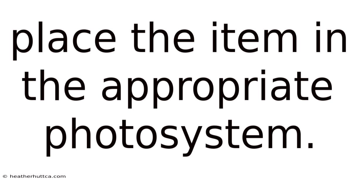 Place the Itemin the Appropriate Photosystem: A Guide to Understanding Photosynthetic Efficiency