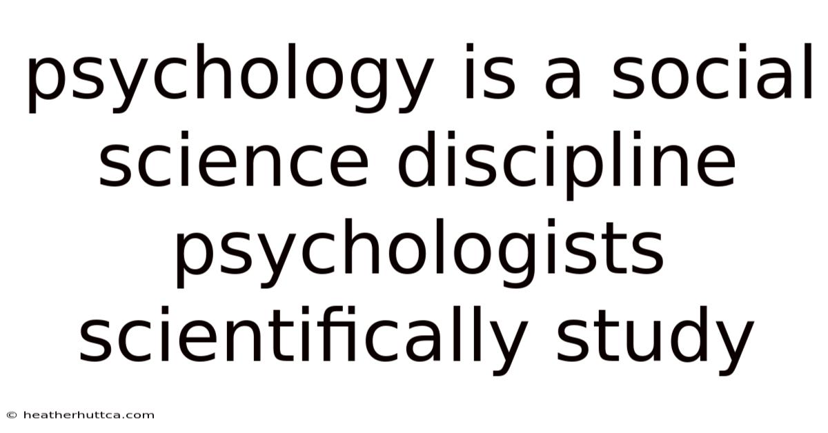Psychology Is a Social Science Discipline: Psychologists Scientifically Study Human Behavior and Mental Processes