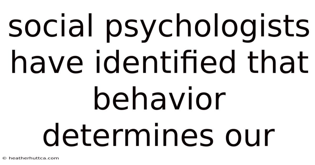 Social Psychologists Have Identified That Behavior Determines Our Identity