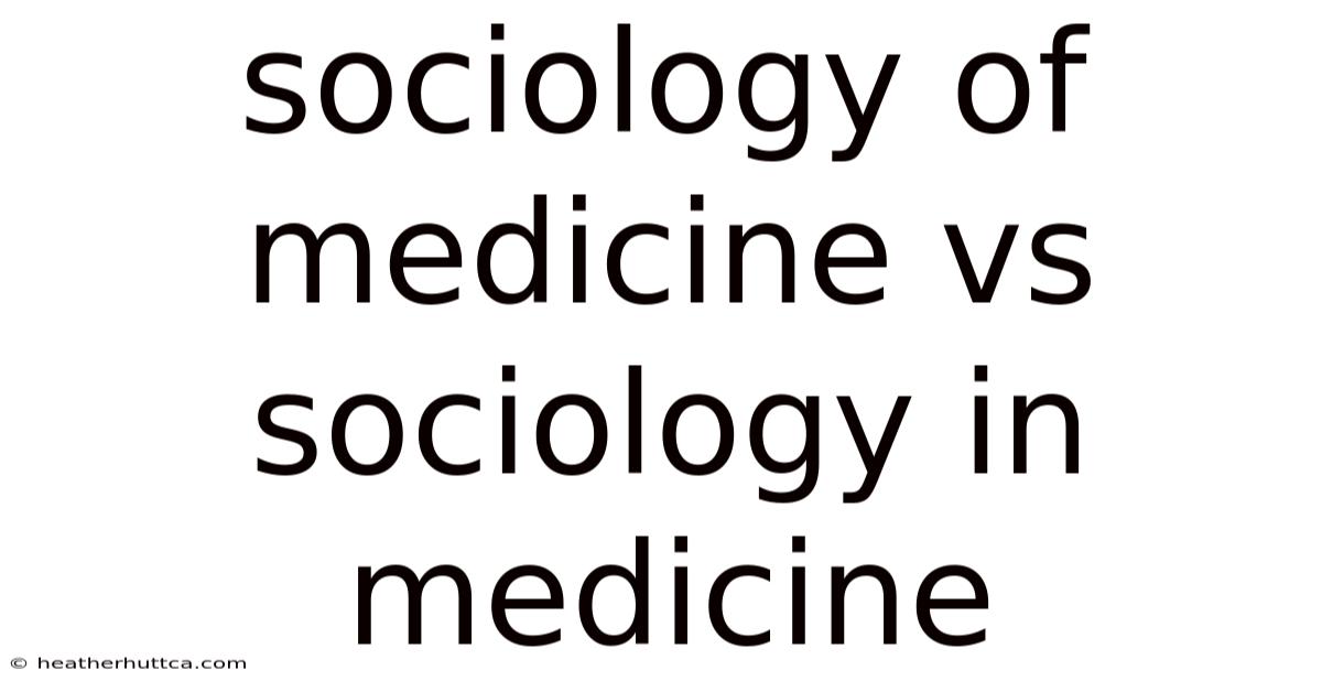 Another key difference lies in their methodologies. The sociology of medicine often relies on quantitative data, such as statistical analyses of health disparities, while sociology in medicine may use qualitative methods, such as interviews or observations, to explore the nuances of patient experiences. Additionally, the sociology of medicine is typically conducted by academic sociologists, whereas sociology in medicine is more likely to involve healthcare professionals or medical researchers integrating sociological insights into their work Worth keeping that in mind..