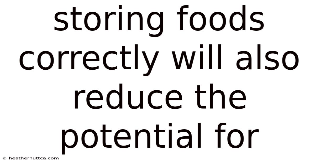 Storing Foods Correctly Will Also Reduce the Potential for Foodborne Illnesses