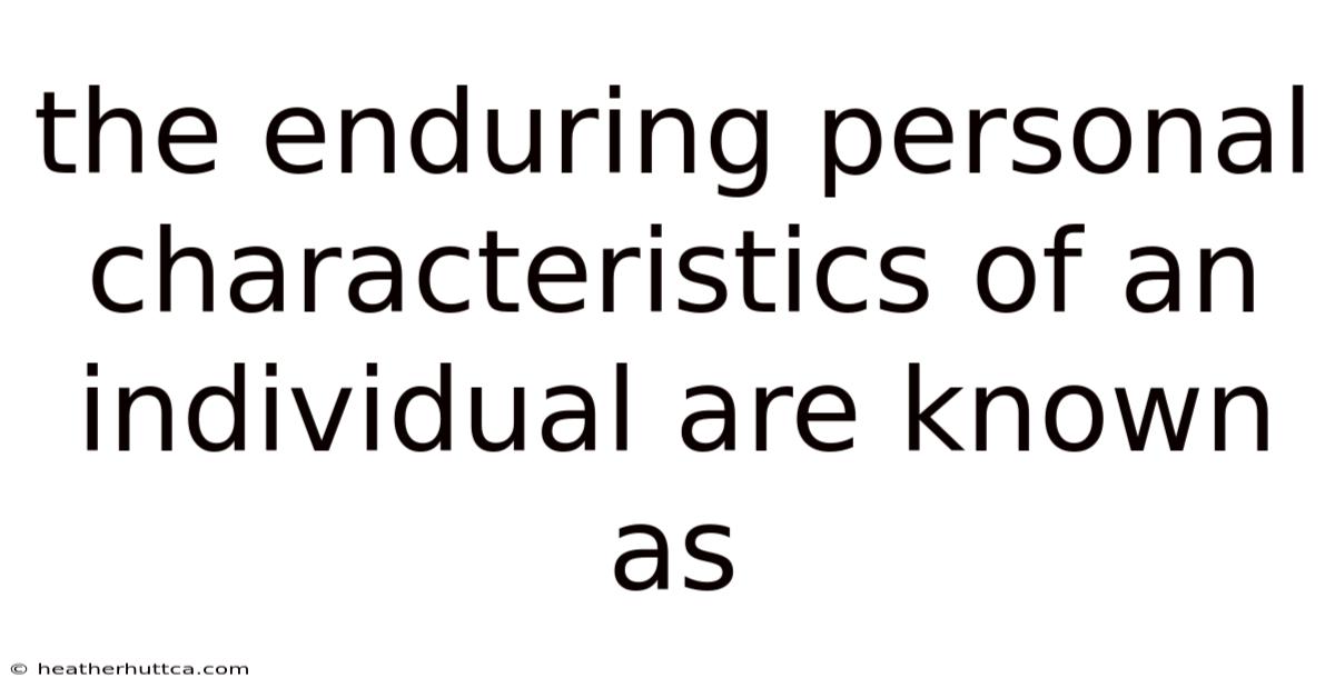 Core Definition The phrase the enduring personal characteristics of an individual are known as personality traits refers to the relatively permanent patterns of thought, emotion, and behavior that distinguish one person from another. Unlike temporary states such as moods or situational reactions, traits persist over time and across contexts, forming a core aspect of identity.