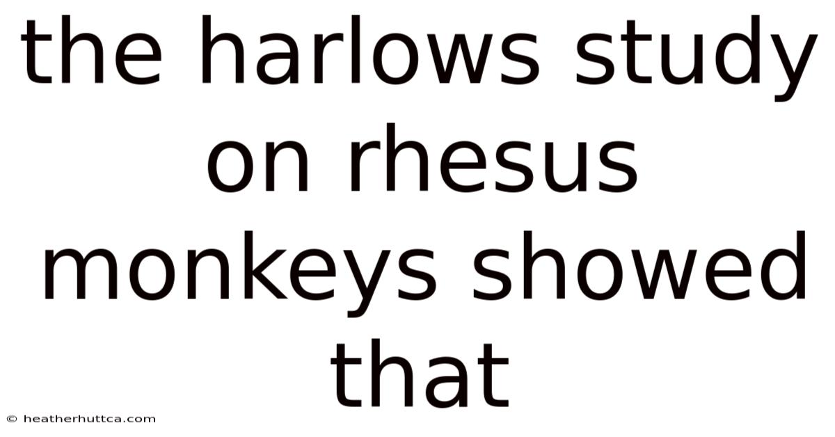 The study on rhesus monkeys has long been a cornerstone in the field of neuroscience and behavioral research, offering profound insights into the complexities of brain function and emotional responses. This article gets into the key findings of the Harlows study, exploring its implications for understanding the neurological underpinnings of behavior and its broader impact on scientific research. Harlows, a pioneering figure in animal behavior studies. Consider this: one particularly significant contribution comes from the interesting research conducted by Dr. By examining the details of this study, we uncover how it reshaped our understanding of rhesus monkeys and reinforced the importance of animal models in advancing human knowledge Easy to understand, harder to ignore..