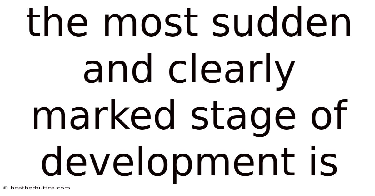 Understanding the most sudden and clearly marked stage of development necessitates a nuanced exploration of its multifaceted nature, where abrupt transitions and heightened awareness converge to create a transformative experience. That's why this phase often operates as a fulcrum, influencing personal trajectories while echoing through cultural and societal frameworks. Its distinctiveness lies in its ability to disrupt complacency, forcing individuals to confront the immediacy of change and the weight of its consequences. Within this context, several factors converge to amplify its impact, shaping how it unfolds and its lasting effects. To give you an idea, biological imperatives such as the interplay between genetics, environment, and early experiences can dictate the nature of the transition, while psychological readiness plays a critical role in whether individuals can adapt effectively. Societal expectations further amplify the stage’s visibility, as cultural norms and collective beliefs often frame the significance of this moment, making it a subject of widespread discussion and reflection. Additionally, the role of key figures—whether mentors, peers, or even adversaries—can act as catalysts, guiding or complicating the path through this critical period. The interplay of these elements creates a complex tapestry where clarity emerges despite the chaos, yet uncertainty persists, rendering the stage both illuminating and disorienting Small thing, real impact..