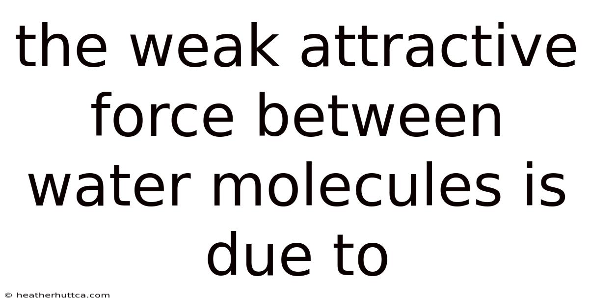 The weak attractive force between water molecules is due to hydrogen bonding, a fascinating phenomenon that is key here in the unique properties of water. This force, while relatively weak compared to covalent or ionic bonds, is strong enough to give water its distinctive characteristics that are essential for life on Earth It's one of those things that adds up..