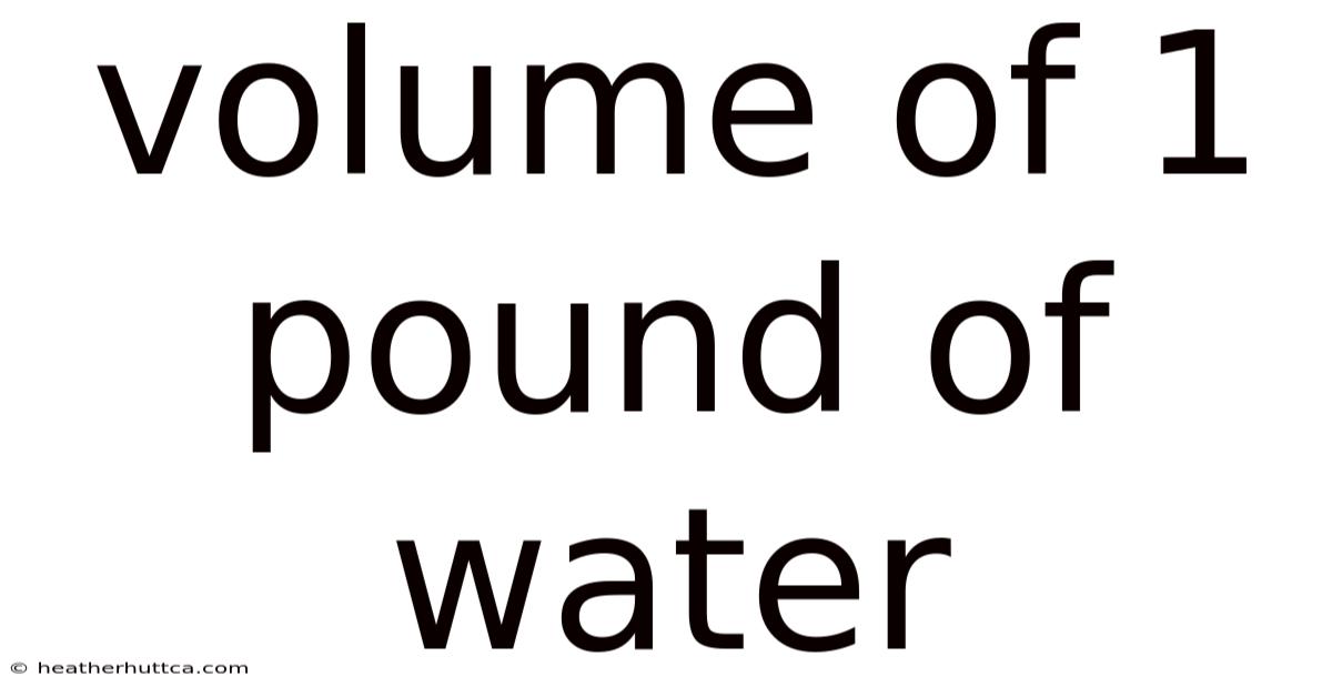 The volume of 1 pound of water is a seemingly simple question, yet it carries significant implications in both scientific and practical contexts. While the answer might seem straightforward, the relationship between weight and volume is influenced by factors like temperature, pressure, and the type of water. Understanding how weight translates to volume is essential for fields ranging from cooking and engineering to environmental science. This article explores the science behind the volume of 1 pound of water, its practical applications, and common misconceptions that often arise That's the part that actually makes a difference..