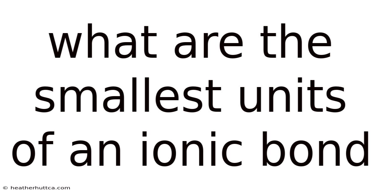 The smallest units of an ionic bond are the two types of ions that come together: cations and anions. These ions are the fundamental particles that form the ionic bond through their electrostatic attraction to one another.