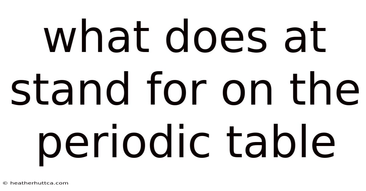 The periodic table is a fundamental tool in chemistry, organizing elements based on their atomic structure and properties. Practically speaking, each element is represented by a unique symbol, often derived from its name. One such symbol is "At," which might puzzle some readers. To understand what "At" stands for, it’s essential to explore its origins, the element it represents, and its significance in the scientific world.