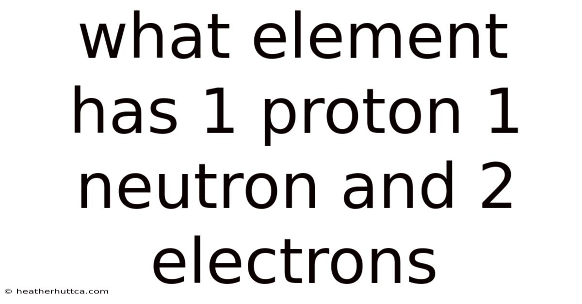 What Element Has 1Proton, 1 Neutron, and 2 Electrons? A Deep Dive into Hydrogen’s Unique Form