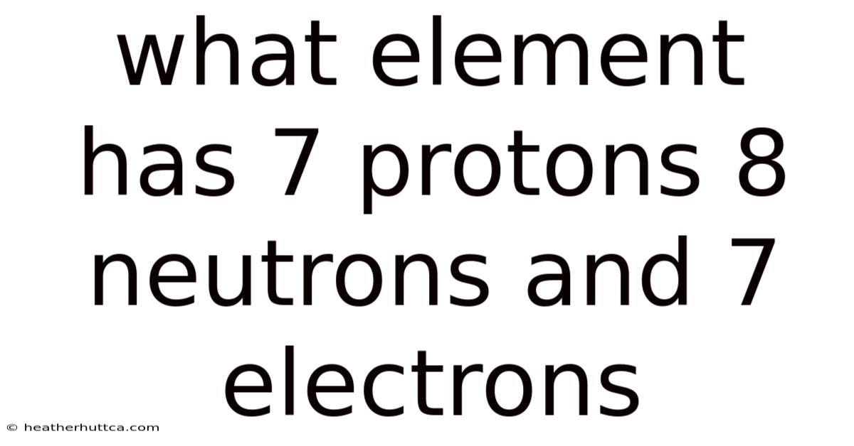 The combination of 7 protons, 8 neutrons, and 7 electrons points directly to the most familiar element in the periodic table—nitrogen—and more specifically to its stable isotope nitrogen‑15 (¹⁵N). Now, while the ordinary form of nitrogen that we encounter in the atmosphere is nitrogen‑14 (¹⁴N), the extra neutron in ¹⁵N gives it distinct physical and chemical properties that make it invaluable in scientific research, environmental studies, and industry. This article explores the atomic structure of nitrogen‑15, its natural abundance, how it is produced and detected, and why it matters in fields ranging from agriculture to medicine.