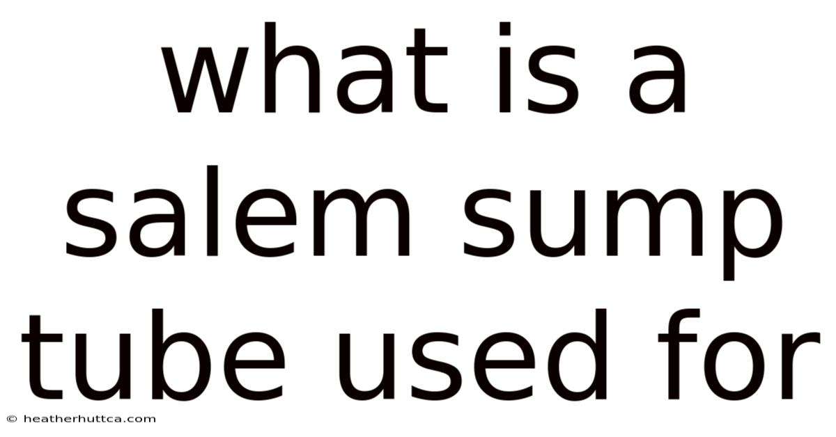 What Is aSalem Sump Tube Used For?