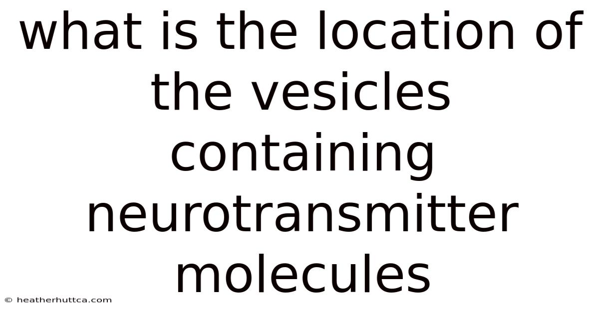 In a nutshell, the vesicles containing neurotransmitter molecules are primarily located in the axon terminals of neurons, specifically within the presynaptic zone. In real terms, they are organized into distinct pools—readily releasable, recycling, and reserve—to confirm that the nervous system can respond to stimuli with incredible speed and precision. In real terms, this highly organized system of packaging, transporting, and docking is what allows our brains to function, enabling everything from the simplest reflex to the most complex human emotion. Understanding this microscopic architecture provides a window into the very mechanics of life itself It's one of those things that adds up..