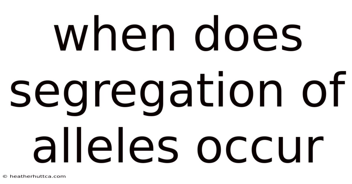 The segregation of alleles is a cornerstone of genetics, occurring during the formation of gametes in meiosis. On top of that, by ensuring that each gamete carries only one allele for each gene, this process lays the foundation for genetic diversity and the inheritance of traits. Understanding when and how this segregation happens not only illuminates the mechanics of heredity but also underscores the complexity and beauty of life's genetic blueprint. Whether you're a student, a teacher, or simply a curious mind, grasping this concept is key to appreciating the wonders of genetics and the legacy of Mendel’s discoveries.