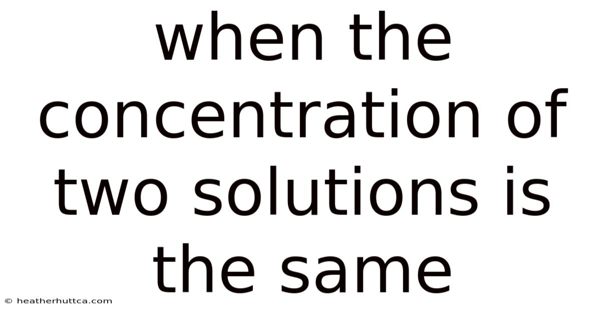When the concentrationof two solutions is the same, the chemical behavior, physical properties, and practical applications of those solutions often mirror each other, creating a key concept in chemistry, biology, and engineering. This article explores the definition, underlying principles, and real‑world implications of when the concentration of two solutions is the same, providing clear explanations, step‑by‑step comparisons, and answers to frequently asked questions. By the end, readers will grasp not only the theoretical basis but also how to apply this knowledge in laboratory work, industrial processes, and everyday problem solving The details matter here..